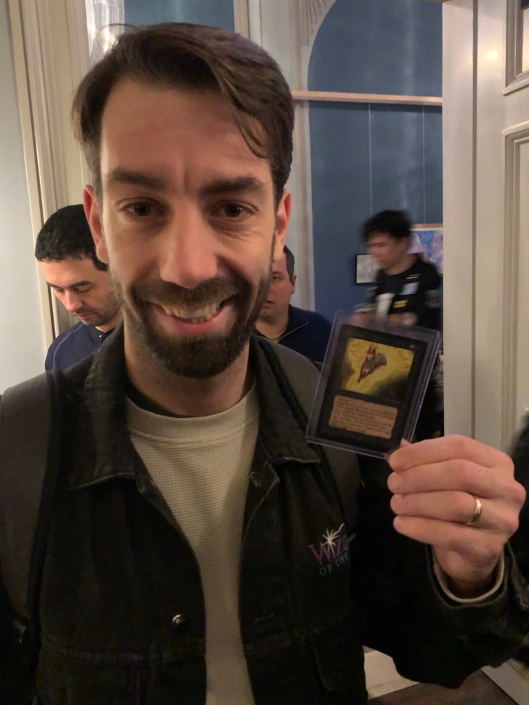 With a new goal in mind of finding a grail in return, I looked back through the pictures Sébastien had sent me and saw something which should’ve been obvious. I was so focused on acquiring more Garfield signed cards in return that I had overlooked the Magic employee jackets and other memorabilia that Sébastien has.